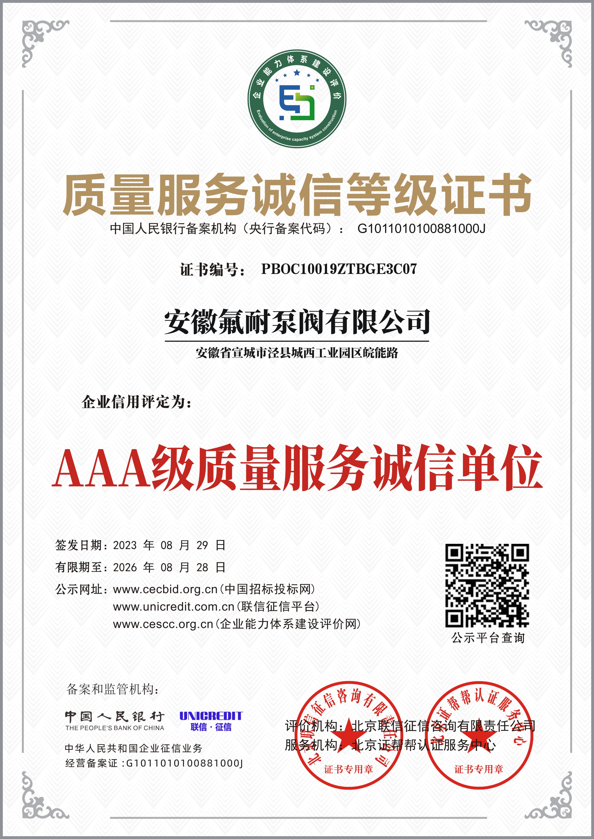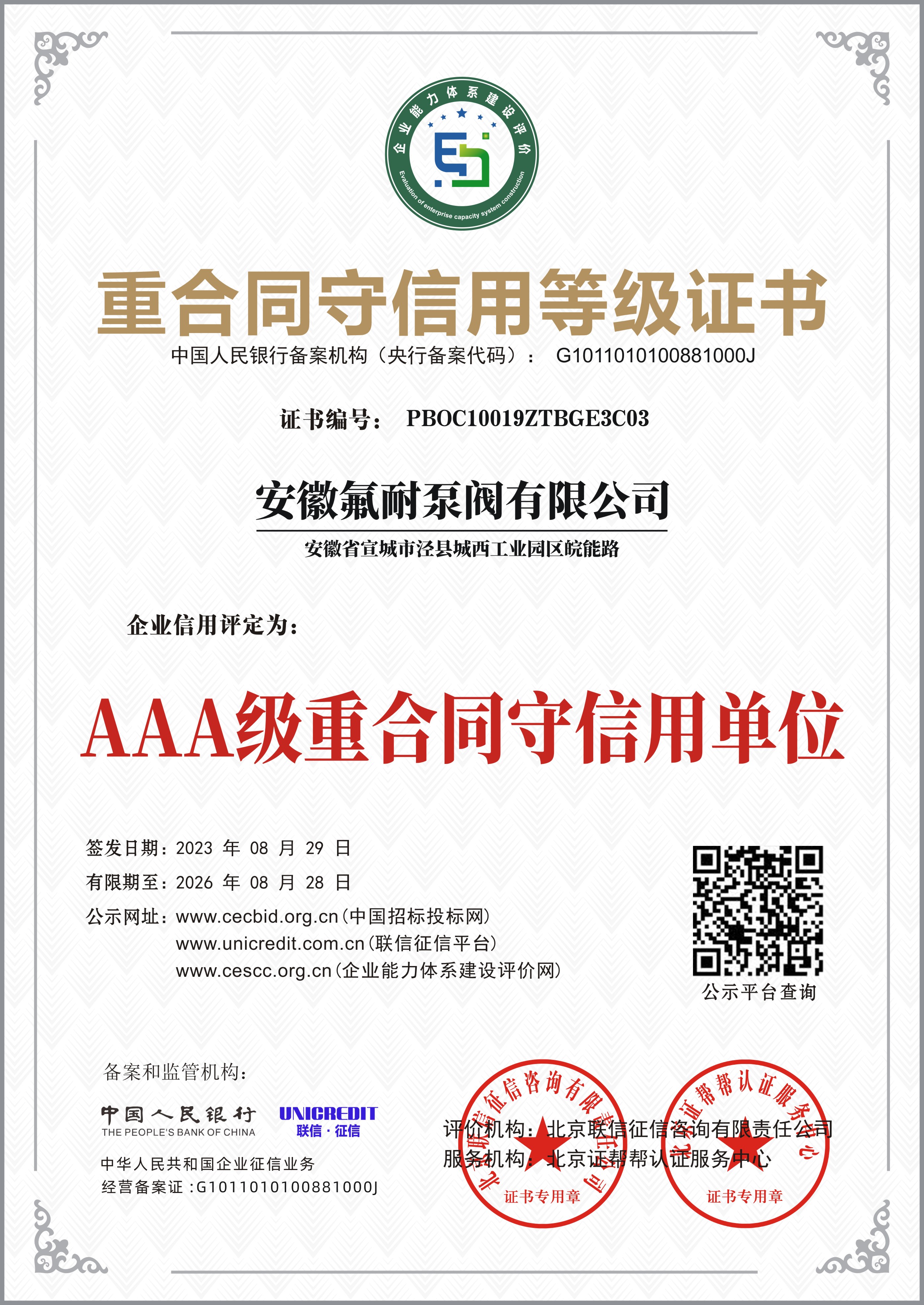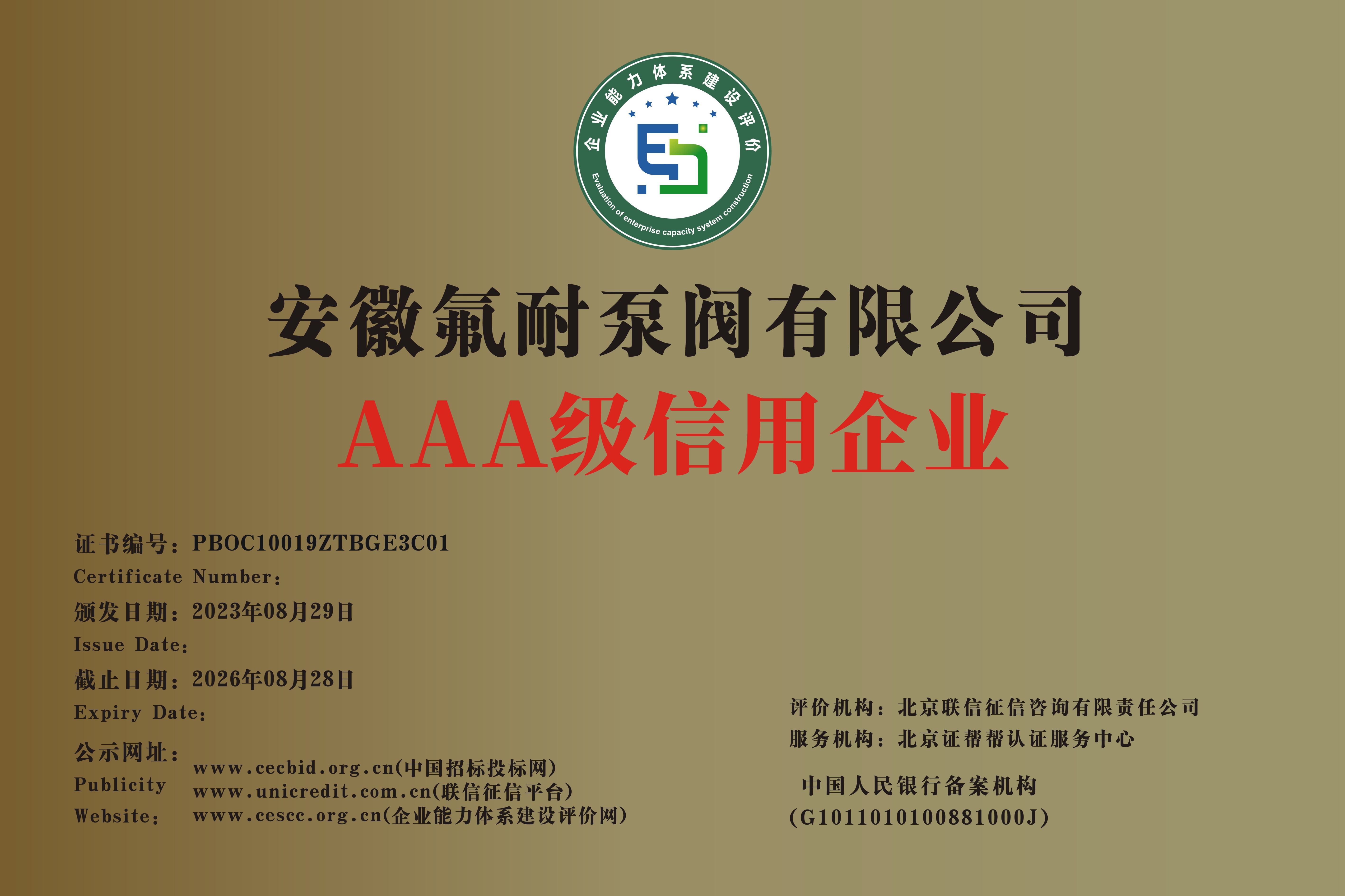 行業(yè)信用等級(jí)AAA
