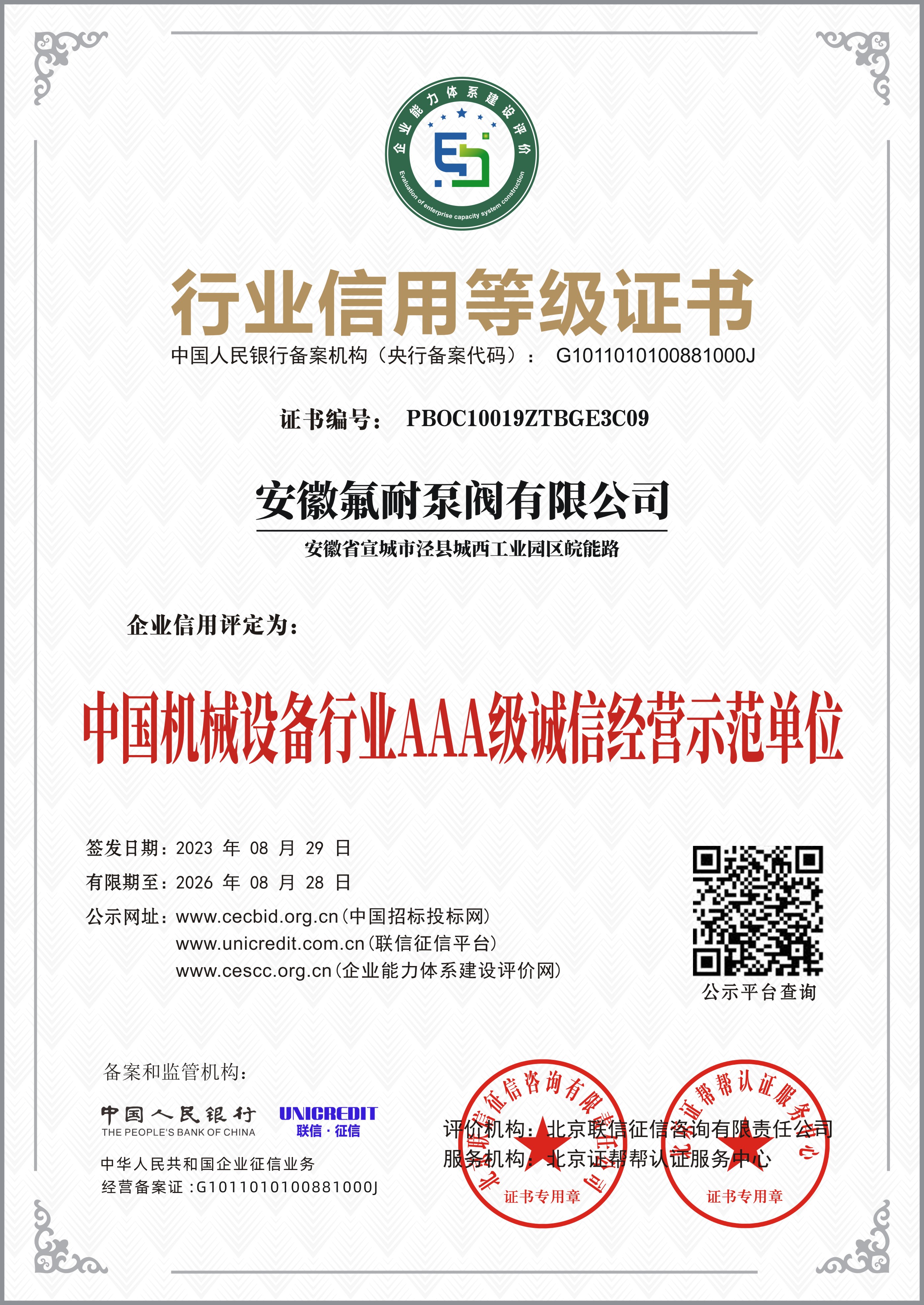 行業(yè)信用等級(jí)AAA